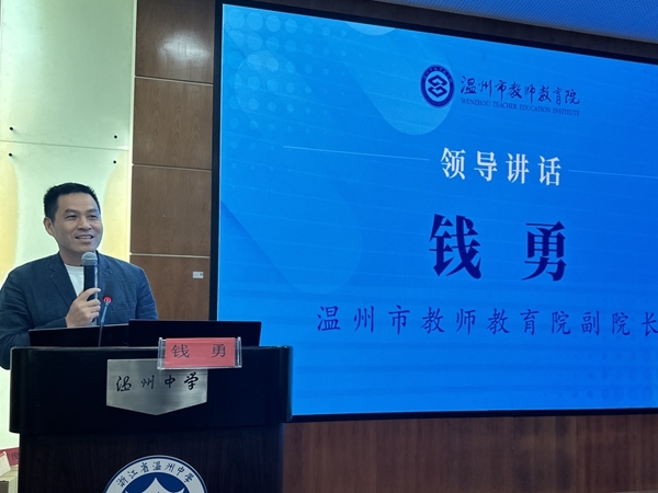 会议伊始,苏德超副校长致词欢迎。他表示,温州中学历来注重青年教师培养、校本研修和市名师工作室的开展,未来也将继续力争走在教育改革的前沿,为温州基础教育贡献力量。