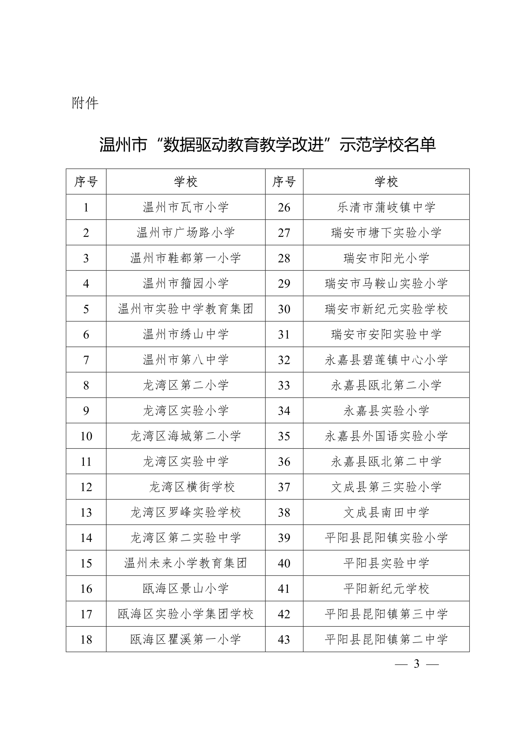 温州市教育局办公室关于公布温州市“数据驱动教育教学改进”示范学校评估结果的通知-威尼斯人888
