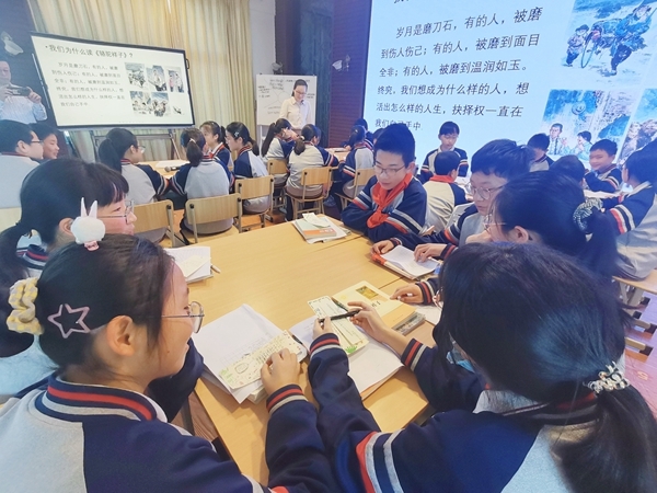 洞头区实验中学郑娟娟老师以读书节真实情境实践《骆驼祥子》项目化阅读指导课。从“命运”“群像”“走兽”“血泪”“哆嗦”“名字”六个主题词的不同视角指导学生,或聚焦故事情节和三叠式结构直指人物命运悲剧,或演绎不同星级车夫之间情景对话引发对洋车夫群像的思考,或关注圈点标注的阅读策略,声情并茂抒发感受……明晰的阅读目标,有效的驱动问题带领学生走进真实阅读。