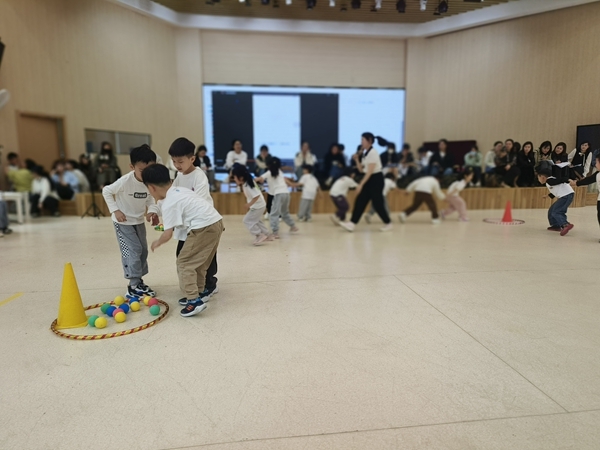 第一个环节是教学活动展示。乐清市旭阳幼儿园园长、温州市学科骨干卢伟老师首先带来了大班语言活动《纸娃娃》,她通过游戏场景的创设让幼儿尝试仿编和不同角色之间的故事,理解纸娃娃遇到的四次惊险,感受纸娃娃手拉手团结勇敢的力量,让孩子们知道原来团结是一件快乐的事。瑞安市飞云实验幼儿园周丹老师利用量身定制的体育器械,结合园内幼儿的运动素养,创生本次园本健康活动。活动中,她引领幼儿深入“积木王国”探险,通过一系列趣味的闯关游戏,探索柱状垫子的多种玩法,将之组合成丰富造型的同时锻炼了他们的上肢力量以及团队合作精神和解决问题的能力。瓯海区仙岩中心幼儿园副园长、市教坛中坚刘晓庆老师带来了大班健康活动《能量保卫战》,她带领一群小小航天员正举行着一场激情四溢的选拔赛。小朋友们在活动中不仅锻炼了身体的协调性,还展示了解决问题的能力和团队合作的精神。