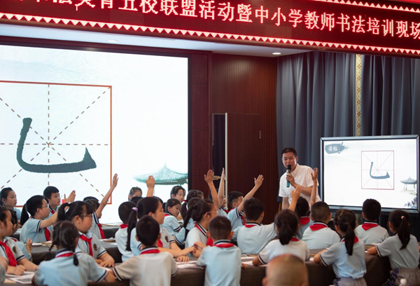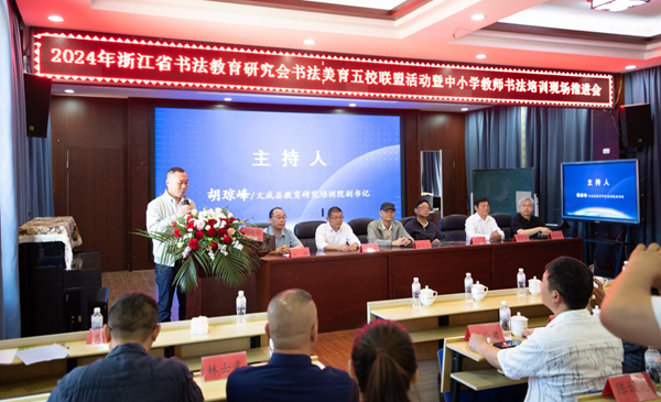 2024年5月17日,2024年浙江省书法教育研究会书法美育五校联盟活动暨中小学教师书法短期培训现场推进会在文成县实验小学举行。
