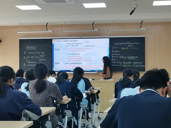 培训伊始,王琦瑶老师呈现了选择性必修三unit4 the reward for perseverance读写课的公开课。王老师通过呈现一张航行地图让学生说出地名来引入文本。阅读环节,王老师就文本提出问题,给学生充分的时间找出船员们面临的困难、解决困难的办法,思考帮助船员克服困难的精神品质。处理好教材内容后,王老师创设了写作情境任务,并以思维导图的形式帮助学生梳理写作要点和重要句型。写中环节,学生在王老师的指导下,积极构思、认真写作。写后环节,学生用评价表对个人和同伴的文章进行写作评价。