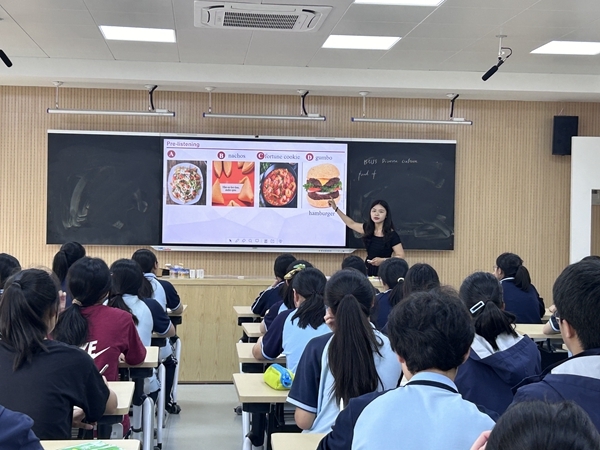 季苗苗老师呈现了必修三unit3 listening and speaking的公开课。季老师通过和外国友人steve关于百乐餐的对话导入,随后通过介绍中国新年中的八大幸运食物让学生形成对食物风味描述和食物寓意的初步认知。听前环节,季老师引入本课介绍的四类食物,并解释生词。听中环节,学生们首先完成了四道经过改编的听力选择题。完成该活动后,季老师传授了学生记笔记的s.o.s.方法,学生在随后的分段听力中运用该方法,完成表格中相关内容的填写。听后环节,季老师给出对话的示例作为脚手架,邀请学生两两对话。在此基础上,季老师提升任务难度,学生需完成个人展示,内容为介绍百乐餐中的一道菜品。最后,季老师给出评价表并布置课后作业。