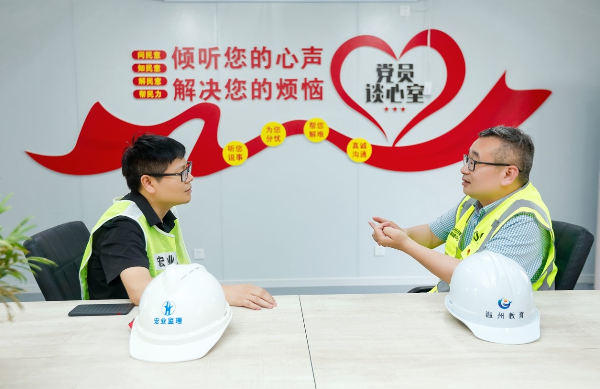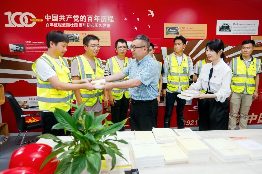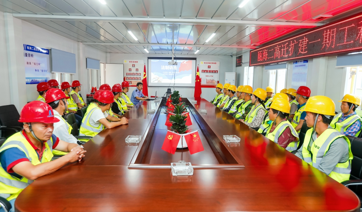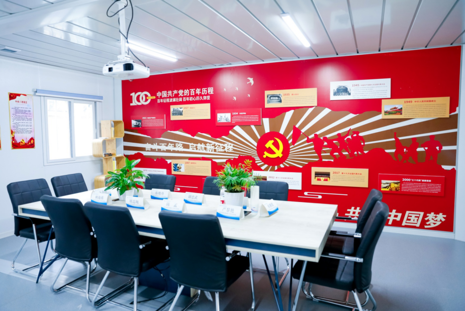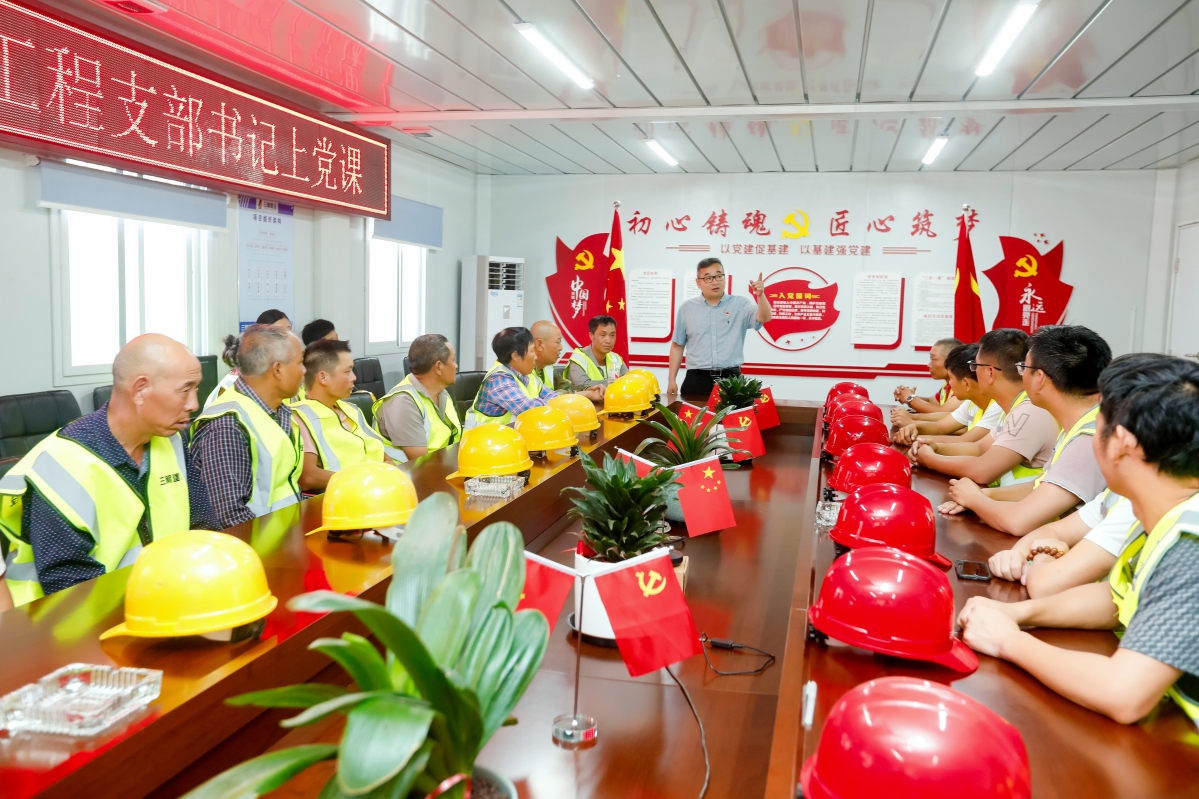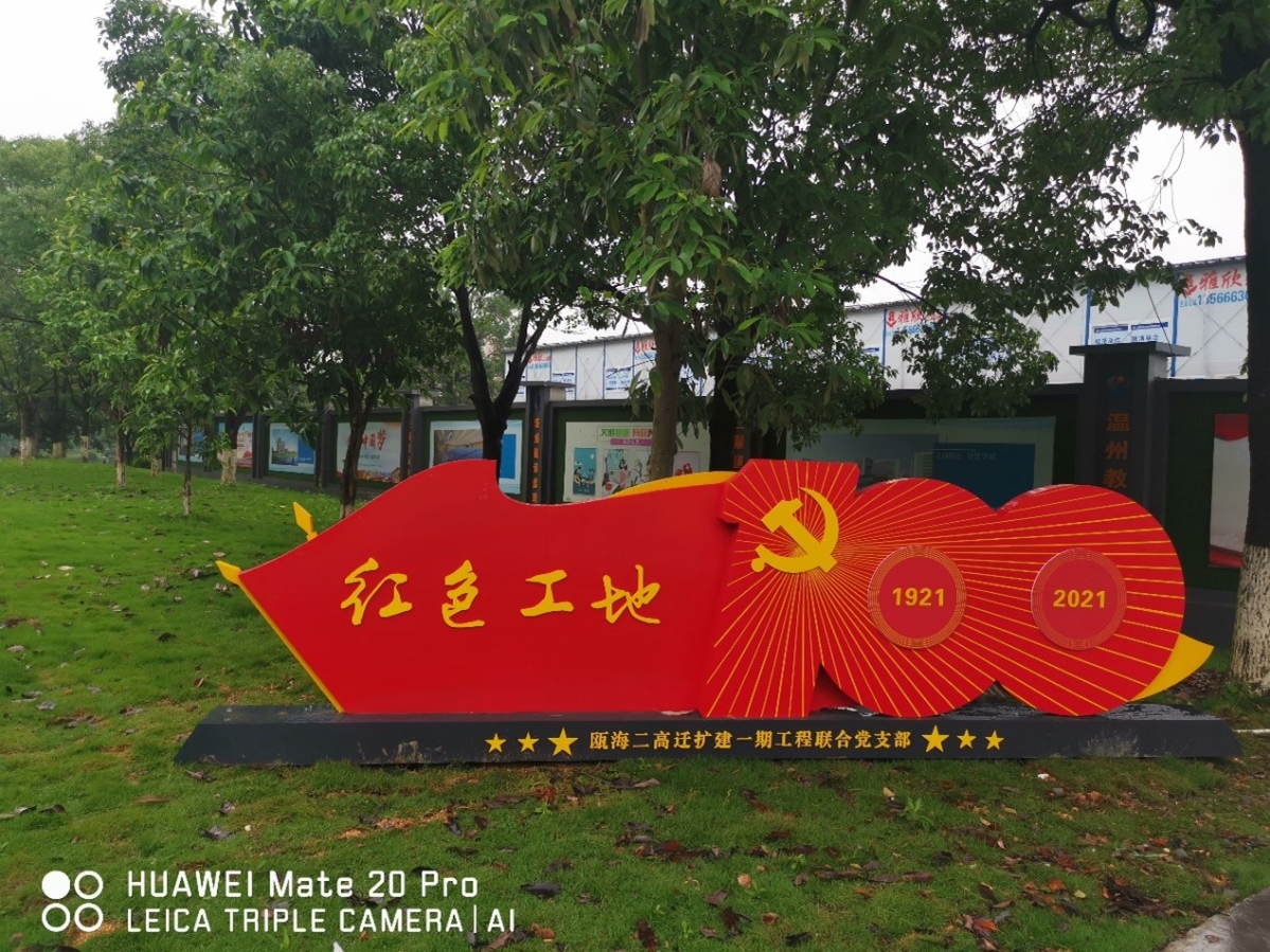 瓯海二高迁扩建一期工程作为温州市教育基建中心第一个代建项目,在市住建局红色工地“六有一好”的基础上,拟定红色工地“八有一好”与“十个有”建设标准,并列入招投标要求中。在市教育局机关党委和市住建局的指导下,将党史学习教育深入工地一线,将支部建在工地上,“一名党员就是一面旗帜,一个支部就是一个堡垒”,以临时党支部和“1 n”党建联盟为组织保障,充分发挥战斗堡垒和党员的先锋模范作用,创建工程项目党建服务品牌,以“红色工地”建设推动“标化工地”、“绿色工地”、“平安工地”、“智慧工地”创建,以党建引领工程建设高质量开展。 目前,支部现有党员16名,设支部书记1名,在党支部书记谢忠武带领下,创新党建模式,全面铺开“红色工地”各项创建活动:“廉洁码”和“质安码”进工地,与群众携手共抓廉洁与质量安全问题;营造浓厚的红色阵地氛围;成立党员先锋队、青年突击队;组织开展谢忠武书记上党课、派出所副所长叶建丰委员法制教育、夏日送清凉、赠送党史学习书籍等系列活动。